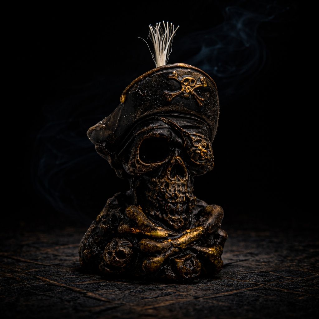 Свеча выполнена в форме пиратского черепа, символизируя свободу, риск и силу воли. Дизайн с костями и пиратской шляпой отражает бесстрашие и жёсткую сторону жизни. Чёрный цвет ассоциируется с защитой, внутренней силой и устранением негатива. Подходит для усиления уверенности и преодоления страхов.