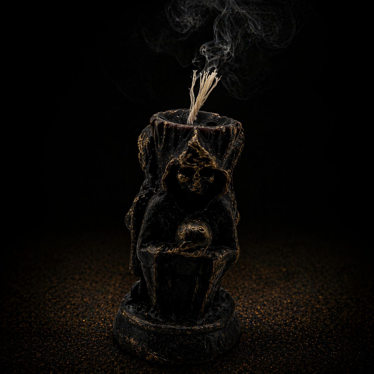 Свеча выполнена в виде таинственного стража с покрытой головой и сферой в руках. Дизайн символизирует скрытые знания, защиту и внутреннюю силу. Сфера отражает концентрацию энергии и фокус намерения, а фигура в капюшоне — интуицию и связь с невидимыми силами. Чёрный цвет ассоциируется с защитой и усилением энергии. Подходит для медитации и энергетической защиты.