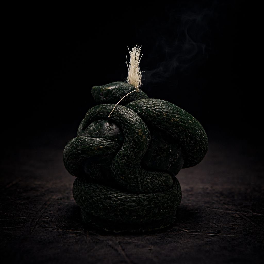 Свеча выполнена в форме змеи, символизируя трансформацию, защиту и силу. Змея ассоциируется с обновлением, изменениями и пробуждением внутренней энергии. Скрученная форма усиливает накопление энергии и защитный эффект. Зелёный цвет усиливает гармонию и исцеление. Подходит для периодов перемен и защиты.