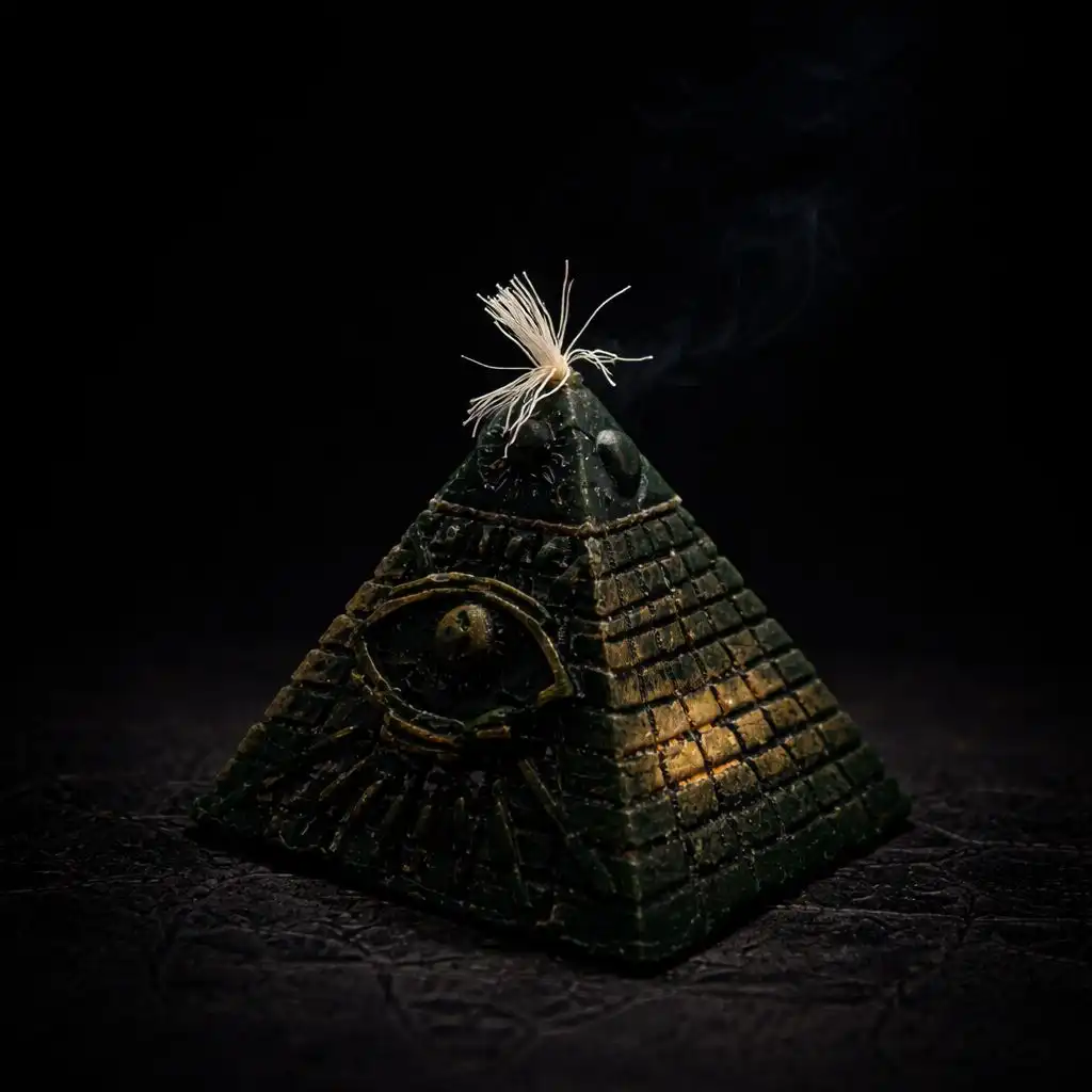 Bu şam piramida formasında hazırlanıb və üzərində “hər şeyi görən göz” simvolu yerləşir. Bu simvol qorunma, güclü intuisiya və gizli enerjilərin açılması ilə əlaqələndirilir. Piramida forması enerjini toplamaq və yönləndirmək gücünə malik sayılır. Yaşıl rəng isə şəfa, balans və maddi bolluq enerjisini gücləndirir. Bu şam enerjini fokuslamaq, qoruyucu sahə yaratmaq və daxili hissləri gücləndirmək üçün istifadə olunur.