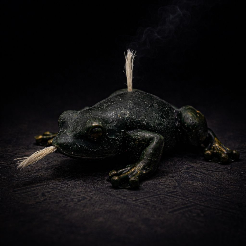 Bu şam qurbağa formasında hazırlanıb və yaşıl rəngi ilə yenilənmə, bolluq və şans simvoludur. Qurbağa bir çox mədəniyyətdə dəyişiklik, yeni başlanğıclar və rifah ilə əlaqələndirilir. Onun torpaq və su ilə bağlılığı enerjinin axını və balansını təmsil edir. Yaşıl rəng isə inkişaf, təbiət və maliyyə bolluğunu gücləndirən enerji ilə bağlıdır. Bu şam yeni imkanları cəlb etmək, şans və inkişaf niyyəti ilə istifadə olunur.